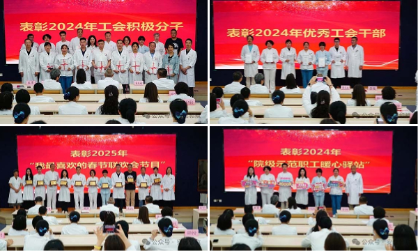会议还对2024年优秀工会干部、工会积极分子、“院级示范职工暖心驿站”及2025年“我最喜欢的职工春节联欢会节目”等获奖个人和分工会进行了表彰。院领导为获奖个人和集体颁发了奖牌、证书。