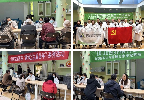 我院外派到首都医科大学附属北京安定医院芜湖医院、拉萨市人民医院、大理州第二人民医院、北京市密云区精神卫生防治院、北京市平谷区精神病院、顺义区顺安医院的医护团队,在当地开展义诊咨询活动,推动心理健康和精神卫生优质医疗资源下沉,让老百姓在家门口就能享受到北京专家的医疗服务,真正为群众送健康、办实事。